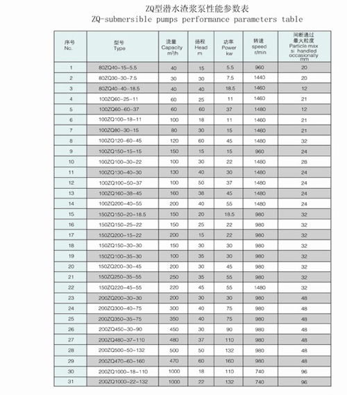 ZQ型潛水渣漿泵是單級、立式、離心式潛水渣漿泵,是我公司設(shè)計的潛水渣漿泵。ZQ型潛水渣漿泵是電機與水泵同軸一體潛入介質(zhì)中工作的水利機械。該設(shè)備結(jié)構(gòu)先進、過流通道寬闊、排污能力強;選材精良、抗腐蝕能力強。適合于運輸含有砂石、煤渣、尾礦等固體顆粒的液體。